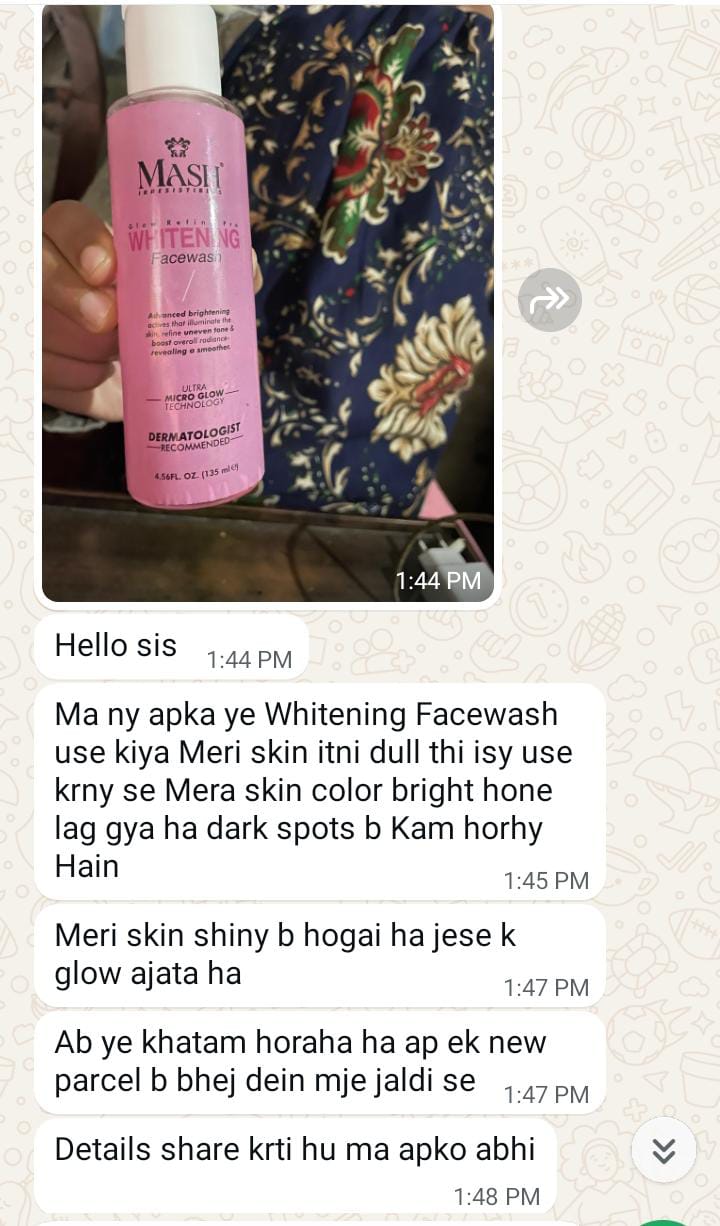 Mash whitening facewash use krny se Meri skin py mje bht acha brightening effect k sath complexion b Mili or skin nourished b horhi h